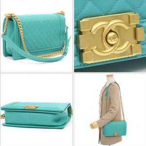 シャネル ボーイシャネル チェーンショルダーバッグ ラムスキン ターコイズ A92193