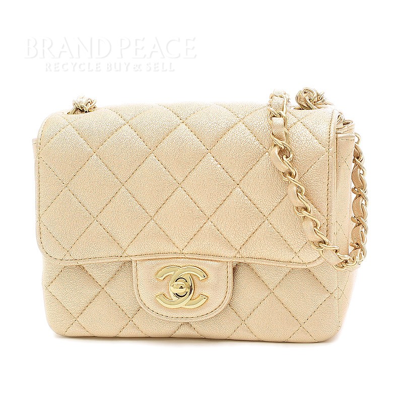 • マトラッセ チェーンショルダーバッグ カーフスキン ゴールド ゴールド金具