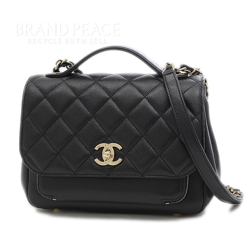 • マトラッセ チェーンショルダー トップハンドル キャビアスキン ブラック A93607
