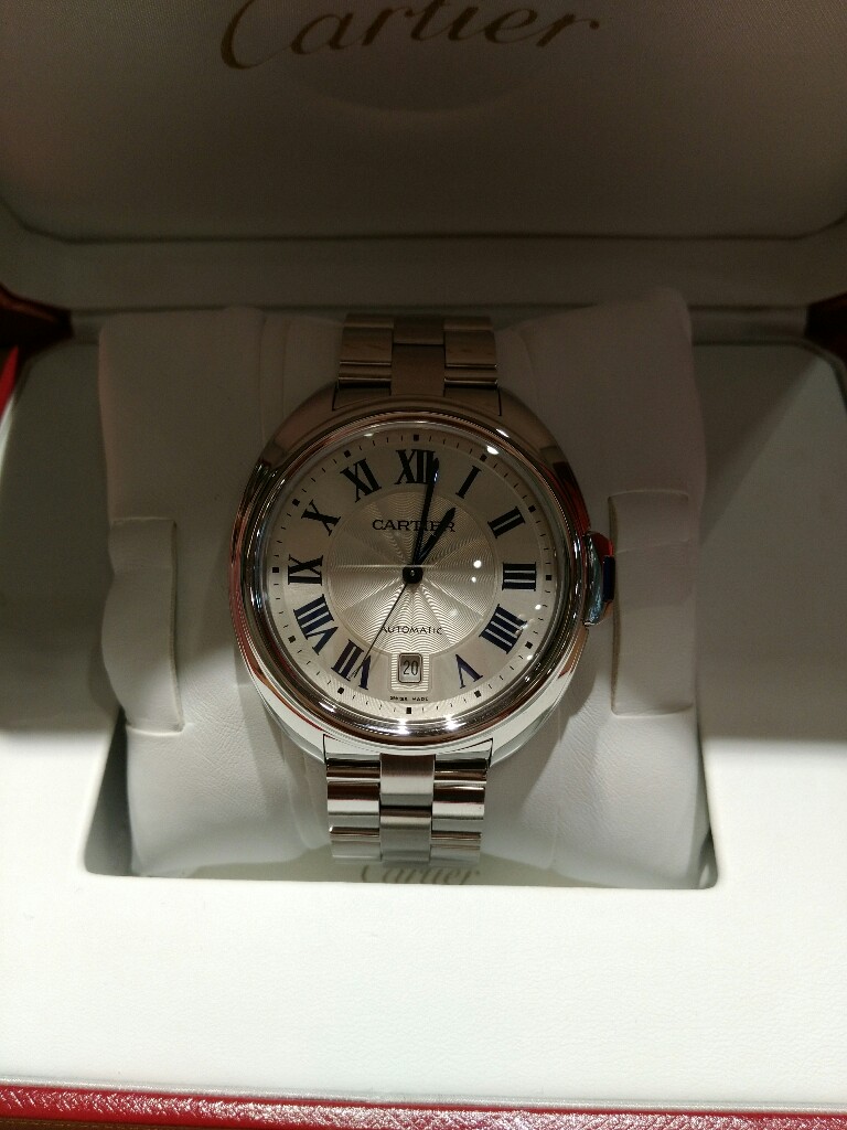 クレ(フランス語で鍵の意味)の個性を際立たせています。 このスクエアのリューズは、回転させると“カチッ”という確かなクリック感があります。 また、文字盤は仕上げを使い分けることで、鍵穴をイメージさせるものらしいです。